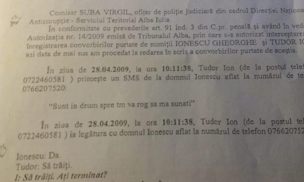 Tudor Ion i-a cerut 100.000 de euro pentru a face aceasta. Fiind socat de pretentiile acestuia, s-a sesizat DNA Alba cu privire la luarea de mita comisa de lichidator. Formandu-se dosarul nr. 70/P/2009, sesizarea denuntaorului a fost la inceput luata in serios, procedandu-se la interceptarea convorbirilor telefonice, si chiar la inregistrari in mediul ambiental. Cum nu avea suma de bani pretinsa de Tudor, denuntatorul i-a promis acestuia ca ii va da un apartament in Timisoara, acesta fiind in principiu de acord.