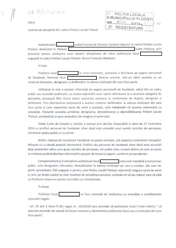 In data de 27.11.2018, la sediul Politiei Locale Ploiesti s-a tinut sedinta de ordine publica. In urma ultimei sedinte, sefului de Birou Evidenta Populatiei (Florea Daniel, cel introdus de Vaida in cimisia de disciplina) i-au fost trasate niste sarcini pe care acesta le-a indeplinit.