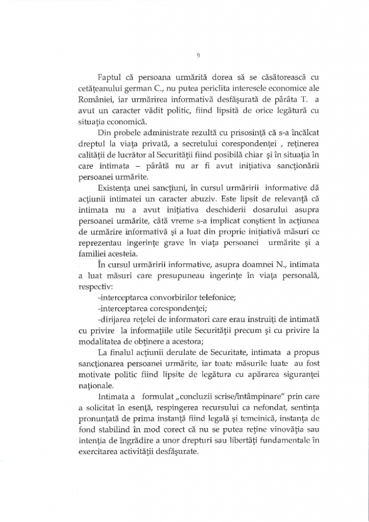 - Motivul de nelegalitate constand in violarea vietii private a familiilor fostilor ofiteri SRI si a domiciliului unui militar.