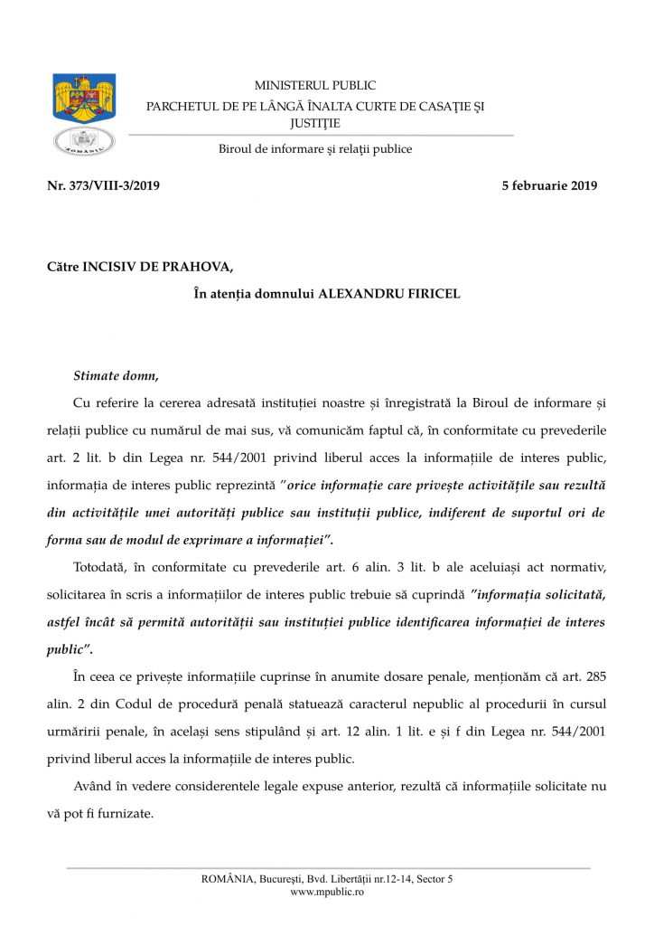 Ca drept dovadă a lașității și a fricii de răspundere a acelor măsluitori îmbrăcați în robă de procuror care distrug munca și imaginea acelor procurori integrii, profesioniști, adresa de refuz a PLÎCCJ nu e asumată (semnată) de nimeni.