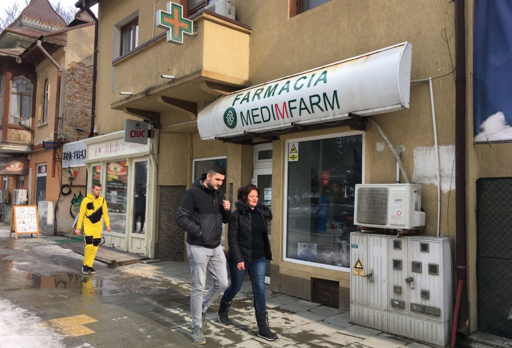 O altă autorizație eliberată de Minister la adresa unui parter de bloc din cartierul Valea Cetății, tot sub pretextul că se găsește într-un centru comercial, a fost vândută de Constantinescu, cu 30.000 de euro, de asemenea, grupului Medimfarm. Ulterior, autorizația a fost „transferată” în centrul Brașovului, pe Strada Iuliu Maniu, la acest local. FOTO: RISE Project.