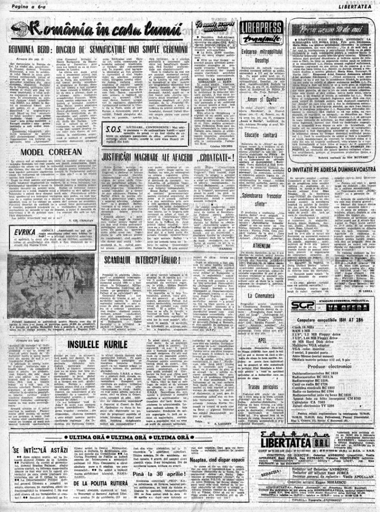 Ziarul Libertatea din 16 aprilie 1991, pag. a 5-a ▼ Click pe imagine pentru mărire