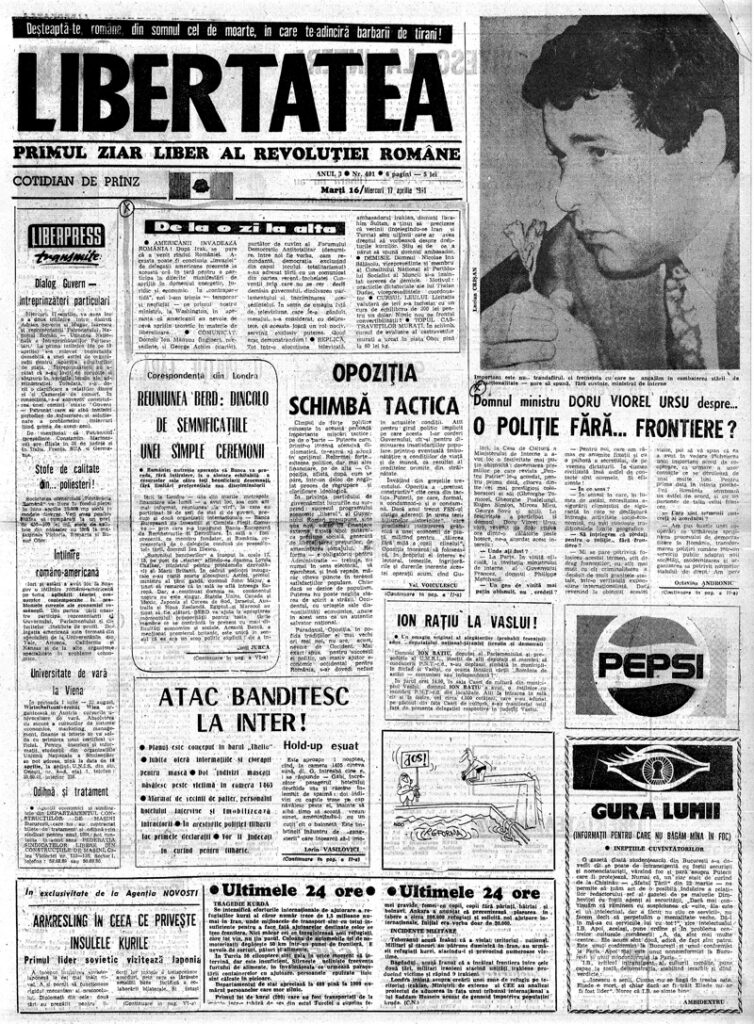 Ziarul Libertatea din 16 aprilie 1991, pag. a 2-a ▼ Click pe imagine pentru mărire