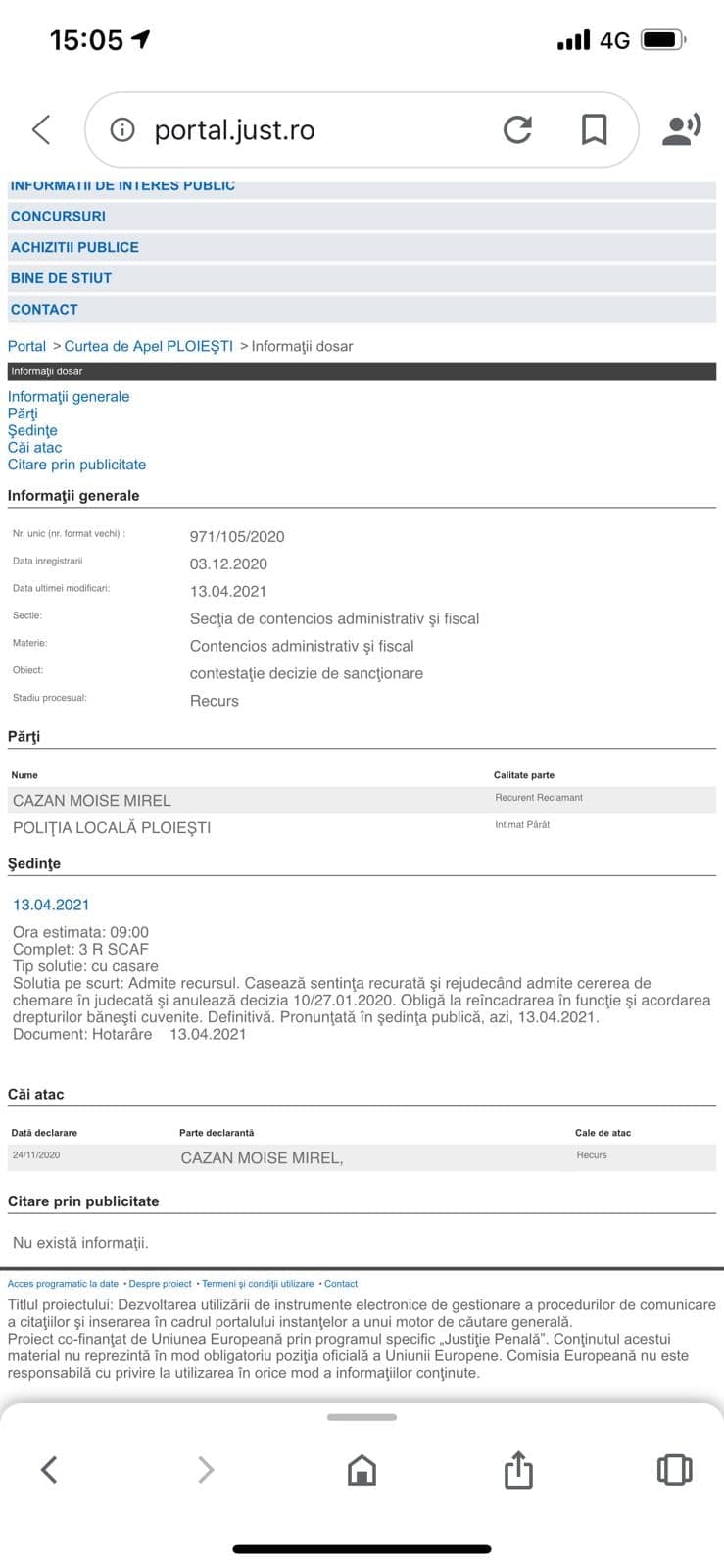 Am precizat in acest articol ca, acum cca an de zile catava site-uri de casa ale eternului director interimar al Politiei Locale Ploiesti titrau cum politistul local Cazan Moise Mirel era dat afara.