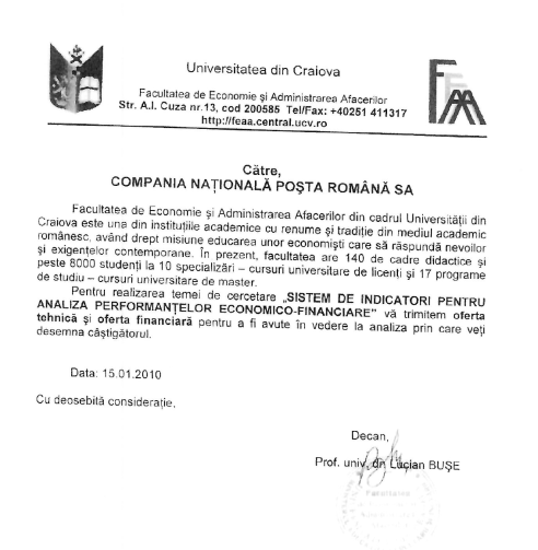 a) Lucian Bușe, ca decan, are puteri telepatice, întrucât documentul este datat 15 ianuarie 2010, iar referatul de necesitate al Poștei Române era semnat abia 5 zile mai târziu;