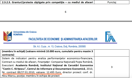 De ce este ,,fundamentat” prețul de 10.500 de Euro? Din nota de fundamentare nu rezultă cum s-a ajuns la acest preț, însă este parte a dosarului candidatului la poziția de profesor universitar evaluarea proiectelor (ca director de proiect) ,,câștigate prin competiție națională” de peste 10.000 de Euro. Nivelul indicat al prețului este încă un motiv și un indiciu temeinic pentru faptul că ,,achiziția publică” fără licitație și prin ,,selecție de oferte” a fost dedicată lui Nicu Marcu. Mai mult de 15.000 de Euro ar fi însemnat licitație, mai puțin de 10.000 de Euro ar fi însemnat că un astfel de proiect nu putea fi luat în considerare la ,,mapa academică” a lui Nicu Marcu.