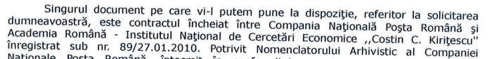 A dat un alt colaborator comun al lui Nicu Marcu și al Poștei Române date confidențiale Institutului Academiei, în speță, prețul achiziției?