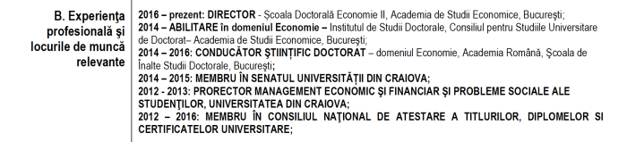 Ambele sunt identice (inclusiv aceleași greșeli de ortografie) cu excepția înlocuirii ,,Facultatea de Economie și Administrarea Afacerilor” (Bușe și Nicu Marcu) cu ,,Institutul Național de Cercetări Economice Costin K. Kirițescu (Franc și Nicu Marcu). Numitor comun: Nicu Marcu.