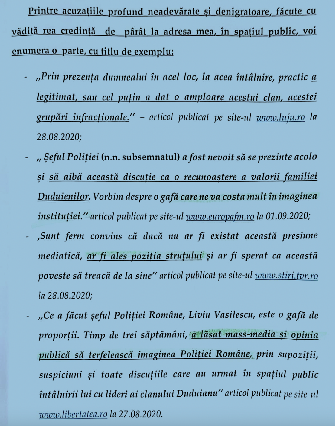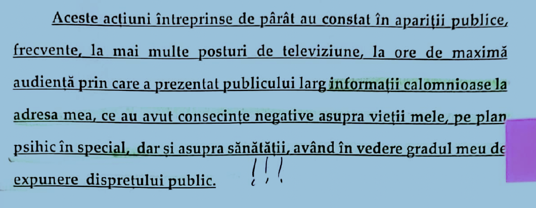 Și toate acestea pentru faptul că cel ce a fost șef al Poliției Române, ar fi suferit „consecințe negative…pe plan psihic în special” ca urmare a criticilor pe care le-am adus începând cu luna august 2020, pentru modul dezastruos în care a fost gestionată înmormântarea interlopului „Emi Pian”. De asemenea, că i-aș fi prejudiciat demnitatea și reputația profesională, în condițiile în care Vasilescu a denigrat toți polițiștii din România afirmând că „a fost ultimul profesionist din Poliția Română” care putea gestiona întâlnirea cu familia lui „Emi Pian”, noaptea, în biserică.