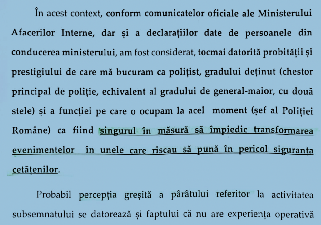 Ce m-a surprins în tot acest demers a fost faptul că Vasilescu nu s-a ferit să folosească, fără niciun fel de scrupule, de stări de fapt care dacă ar fi reale, ar fi incompatibile cu avizul psihologic pentru funcția de conducere exercitată. Astfel, Vasilescu susține că a suferit „traume psihice, insomnii, stări de stres” pe perioada celor 2 ani, toate aceste afecțiuni incompatibile cu avizul psihologic necesar pentru exercitarea funcției pe care o ocupă. Nu am cum să nu mă întreb cum se comportă atunci când trebuie să ia decizii sub presiune sau în contextul unor situații limita, pe parcursul cărora ar trebui să dovedească stăpânire de sine, pragmatism, obiectivism și gândire analitică. De altfel, inclusiv Ordinul MAI 23/2015 privind activitatea de psihologie în MAI confirmă aceste susțineri.